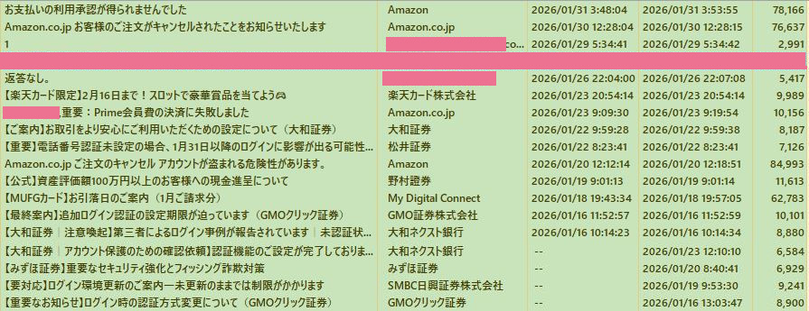 2月後半は、サーバー上で、SPAMと判断されたもよう。受信に至らず。
